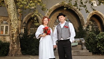 Пара в стиле свадебных фото